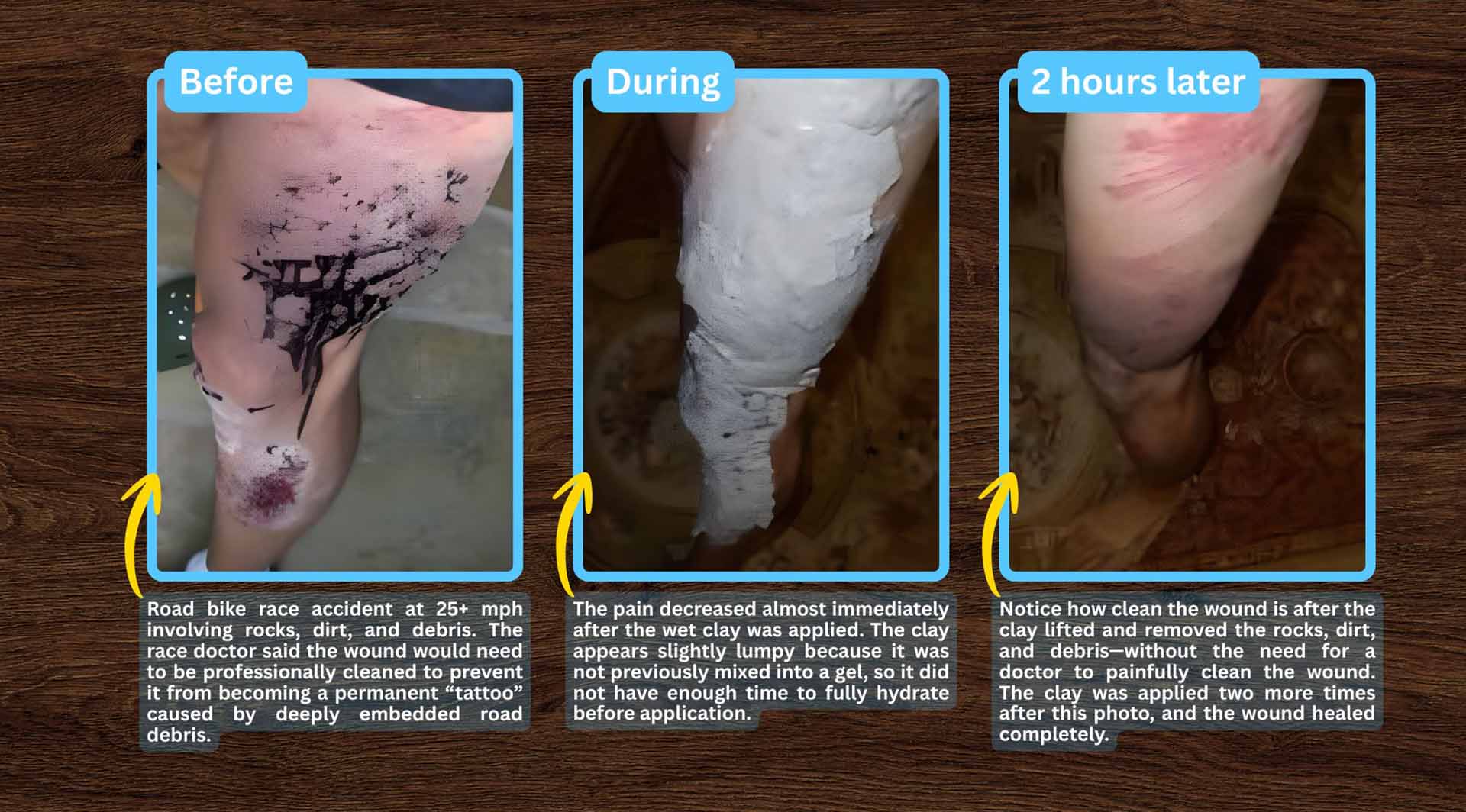 Burns, cuts, road rash, infections — clay gel works fast to reduce pain and speed recovery.
